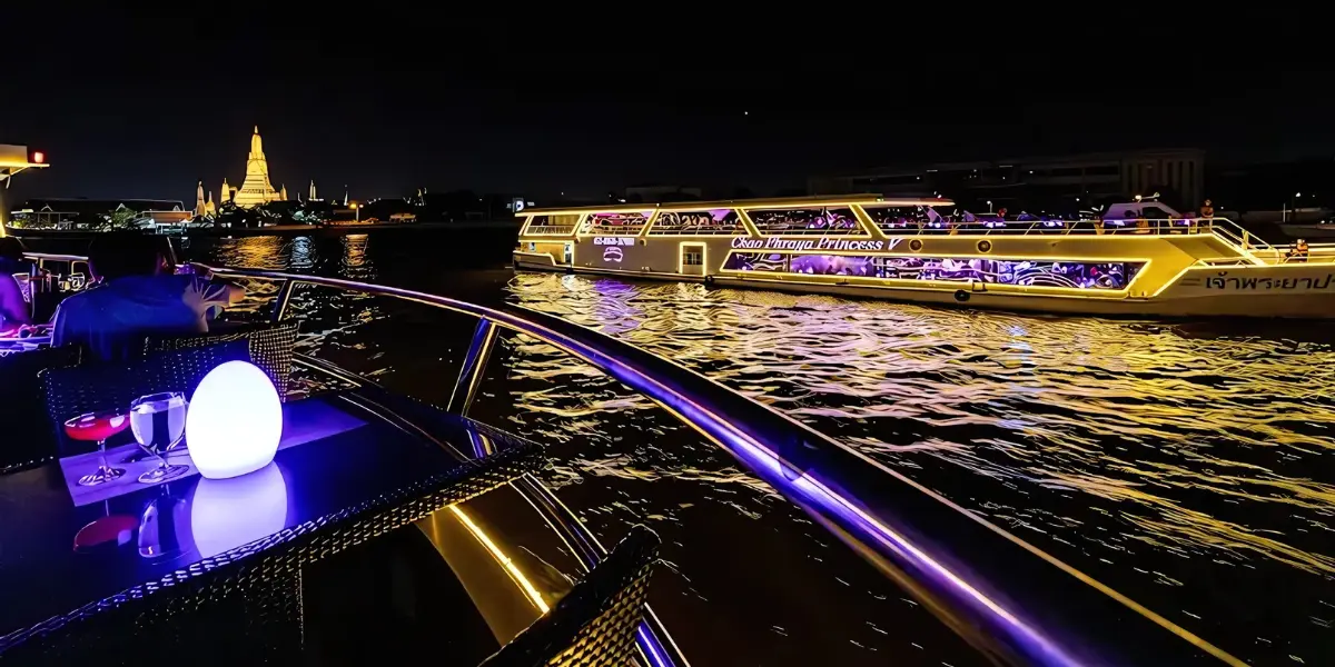 Sangat cocok untuk pasangan, keluarga, dan siapa pun yang menginginkan malam istimewa di Bangkok. Kapal-kapal ini nyaman dengan pendingin udara, dan Anda dapat duduk di dalam atau di dek untuk menikmati semilir angin sungai. Sebagian besar pelayaran termasuk musik live dan hiburan untuk membuat malam Anda semakin menyenangkan. Anda akan melihat pemandangan luar biasa seperti Istana Grand Palace, Kuil Wat Arun, dan gedung pencakar langit modern yang semuanya diterangi dengan indah. Ini adalah salah satu cara paling romantis dan santai untuk melihat landmark terbaik Bangkok sambil menikmati hidangan lezat di atas air.